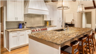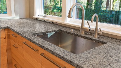 Granites are undoubtedly the most popular stone type used in countertop applications today. This group of stones includes many stone materials that are not true granites by geological definition. However, because their properties are so similar, the American Society for Testing and Materials International (ASTM) lumps them together as ‘granite’. These stones are known geologically as gabbro, anorthosite, gneiss, diabase, and diorite, to name a few. Whatever the name, these stones are some of the hardest of the common countertop stones, offering high levels of resistance to abrasion and scratching. The primary minerals in granite are resistant to almost all chemicals commonly found in a home; however, there may be trace minerals present in some granites and granite-like stones that are vulnerable to some acids.