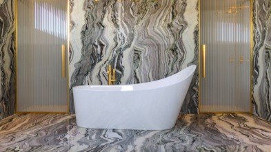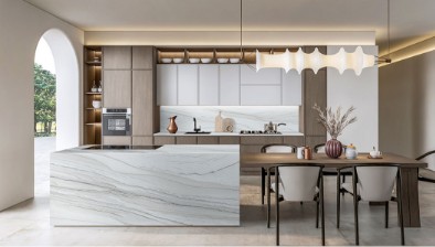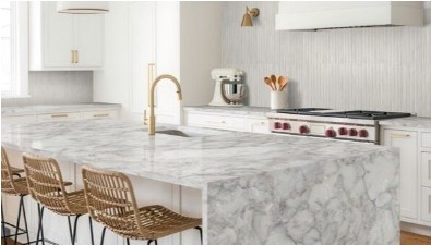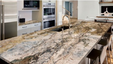 Marbles, serpentines, and onyxes are traditionally prized for their aesthetic appeal, accentuated by distinct veining and often bold colors. They are relatively softer than granite, although some serpentines are as dense as some granites. Marbles can be scratched by kitchen utensils so it is best to use cutting boards and other protective measures. Use only non-abrasive products when cleaning marble. Marbles can also be etched by chemical attack. These stones are calcium carbonatebased and are damaged by exposure to acidic solutions such as lemon juice, tomatoes, vinegar, etc. The use of inappropriate cleaning agents may also trigger acidic attack. Acidic solutions can permanently etch the surface of the material. The application of a sealer will reduce, but not eliminate, the vulnerability to acidic attack. For these reasons, your stone dealer may not recommend marble for use in kitchens.