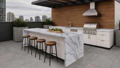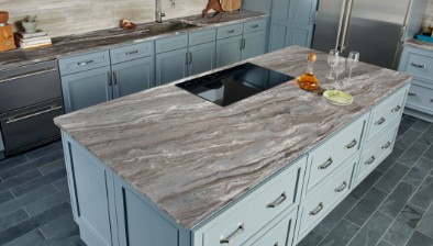 Quartzite is a very popular materials in the kitchen counter top market, known for its rich colors and elegant veining, many colors have a translucent appearance. Pure quartzite is usually white or gray; however, the presence of iron oxides and other minerals may cast pink, red, blue or even green tones through the material. If you prefer the beauty and color of quartzite, rest assured that you are selecting a material that is strong, beautiful, and very durable. Quartzite is a hard metamorphic rock originally formed as a sandstone with an above average resistance to scratches and abrasions. These materials may be more scratch resistant, they are not “scratch proof”.